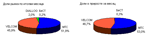 По итогам рассматриваемого периода доли рынка и доли в приросте абонентских баз операторов в течение месяца распределены так: